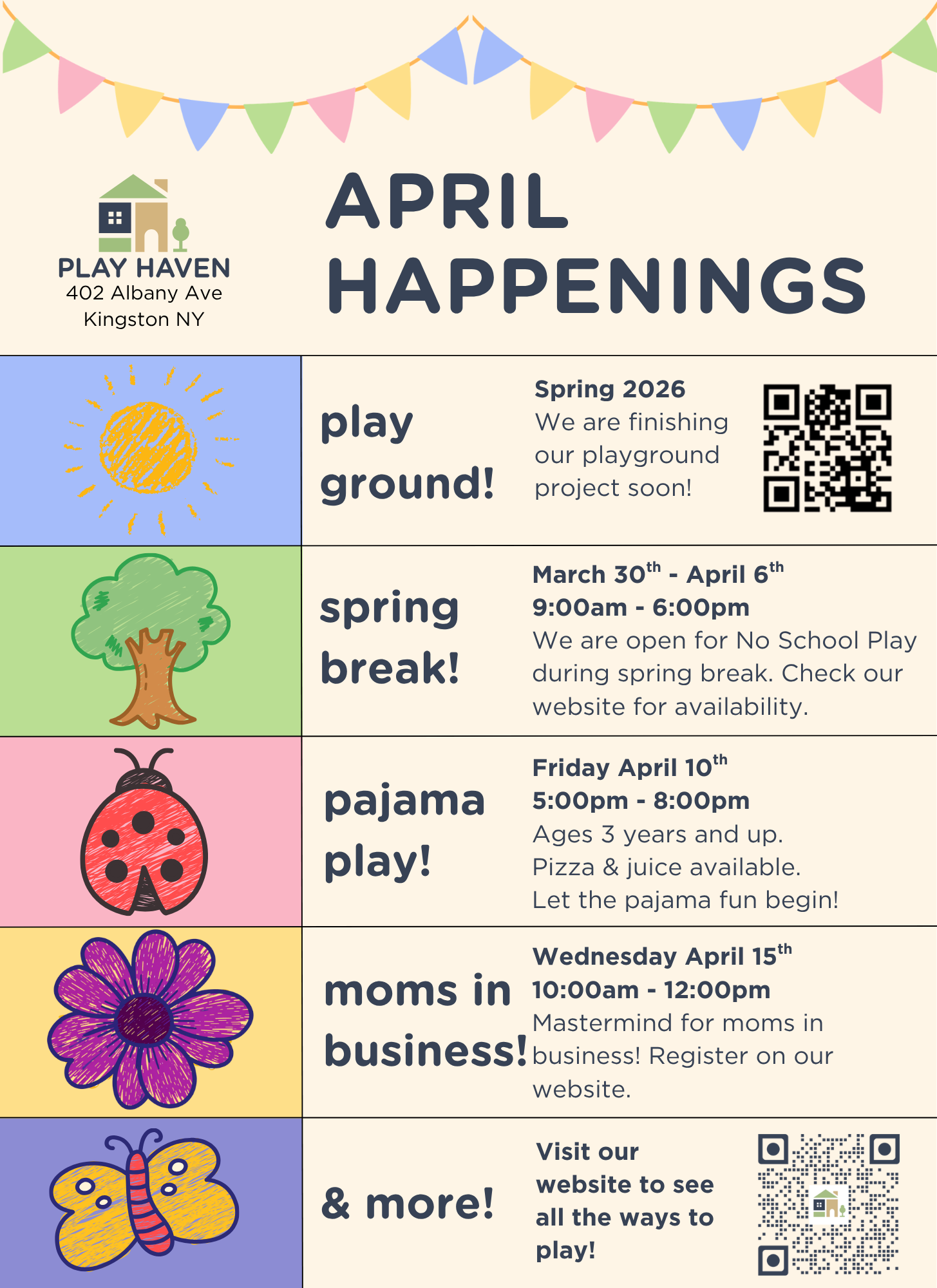 Have a special day off of school? Make it a Play Haven Day! We are open most school holidays and snow days, and are ready for fun! Available for school aged children.